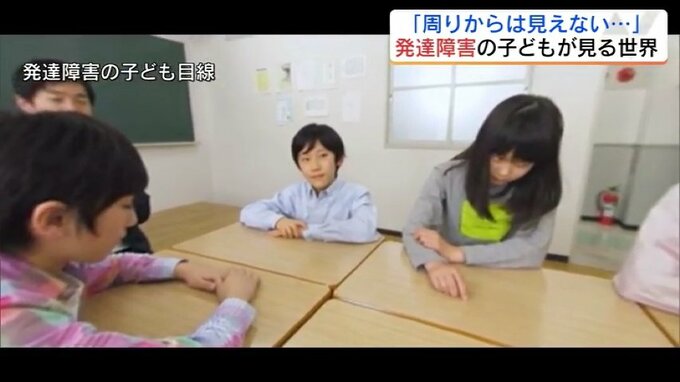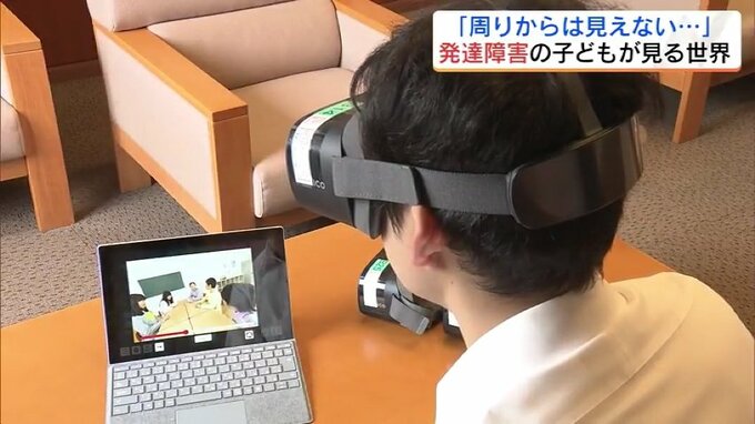 VRでは6種類の映像が用意され、学生たちは、発達障害の子どもたちの立場に立ち、障害への理解を深めていました。