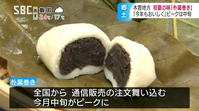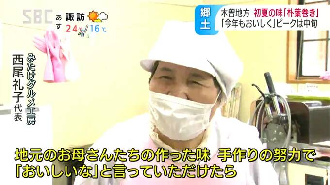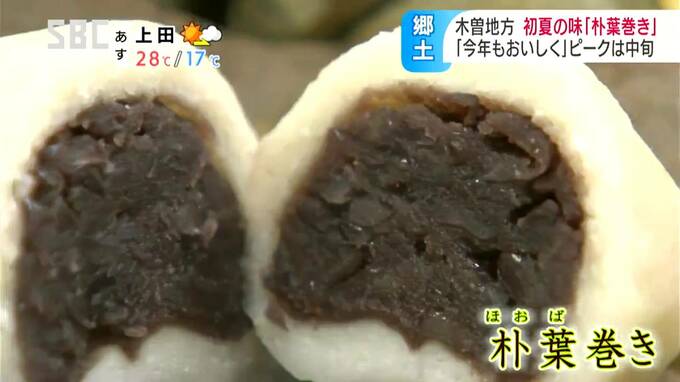 木曽地方の初夏の味として親しまれている「朴葉(ほおば)巻き」作りが始まっています。