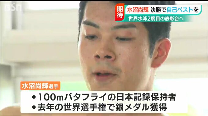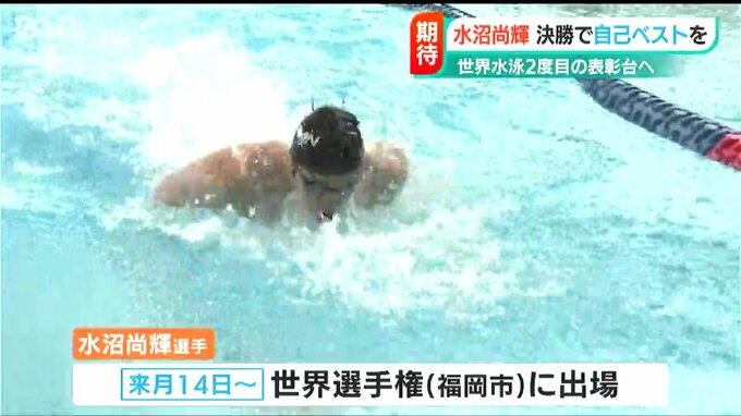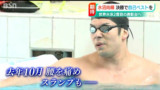 世界水泳の開幕まで1か月あまり。2度目の表彰台を目指す新潟医療福祉大学職員の水沼尚輝 選手が、長岡市で強化練習を行っています。