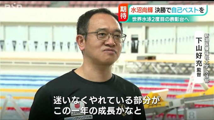 【新潟医療福祉大学 水泳部 下山好充 監督】「(泳ぎの)方向性が定まるまでは2人とも試行錯誤しながら、暗中模索のような状態だった。(水沼選手からは)去年よりもメダリストの意地も感じて、迷いなくやれている部分がこの一年の成長かなと」