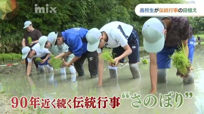 田布施農工高校ではきょう田植えがありました。前身の田布施農業高校の開校以来90年近く続く、「さのぼり」と呼ばれる伝統行事です。