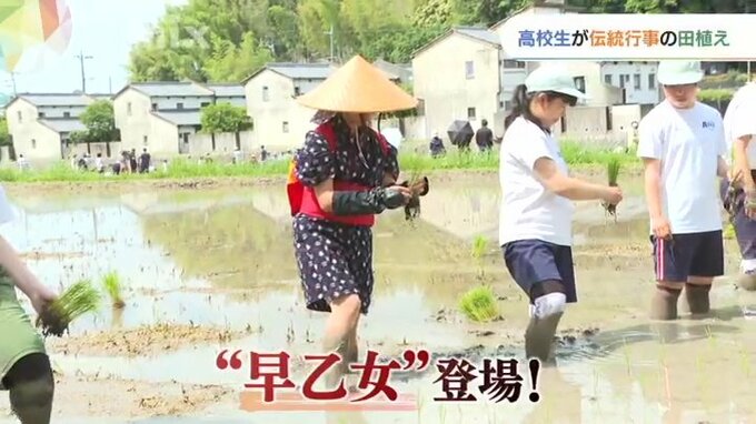 山口県田布施町で農業を学ぶ高校生が伝統行事の田植えに挑戦しました。