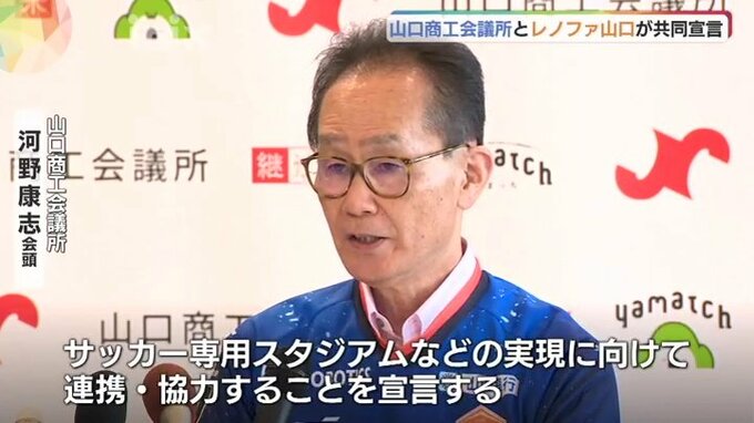 山口商工会議所とサッカーJ2レノファ山口が、J1昇格に向けてサッカー専用スタジアムの整備実現などを盛り込んだ共同宣言を発表しました。