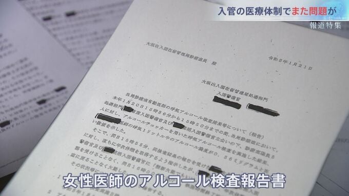 2023年1月、大阪入管で胆石に苦しむコロンビア人女性を、常勤の女性医師が酒に酔った状態で診察していたという。法務省はこの事実を公表しておらず、5月30日に難民を支援する団体によって明らかにされた。