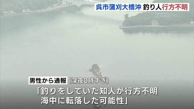 11日未明、広島県呉市の蒲刈大橋沖で釣りをしていた男性が、行方不明となっています。