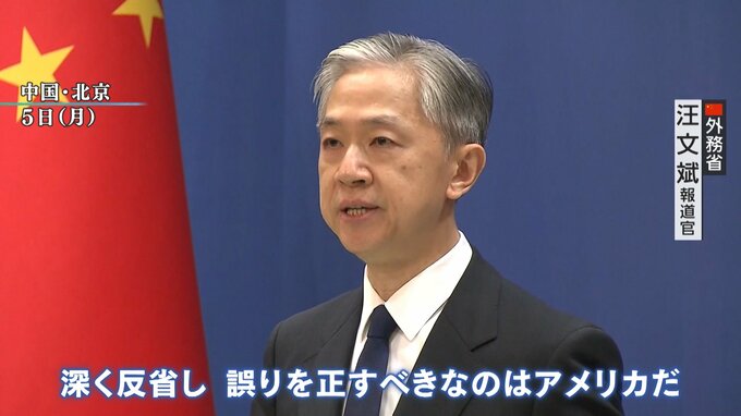 「アメリカ側が先にトラブルを起こして挑発したため、中国はその後に、法にのっとって処置したのだ。深く反省し、誤りを正すべきなのはアメリカだ」