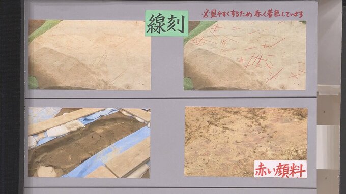 これは、「線刻」と呼ばれるもので、死者の霊を封じ込めるといった呪術的な意味があるとみられています。