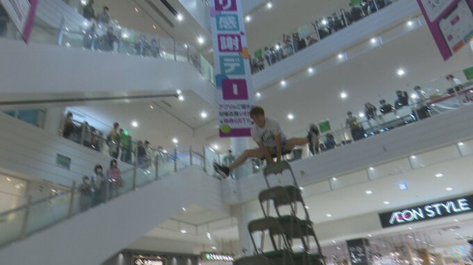 世界トップレベルのアスリートによるパフォーマンスショーが山梨県昭和町のショッピングモールで行われました。ショーを行ったのは跳び箱の世界記録保持者、池谷直樹さん率いるアクロバットミュージカル集団「サム…