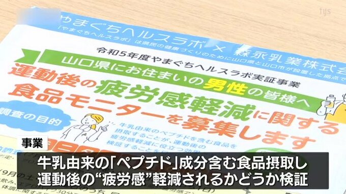県と山口市が共同で設置した県民の健康向上などを目指す組織「やまぐちヘルスラボ」が、疲労感の軽減を検証するための食品モニターを募集しています。この事業は、牛乳由来の複数のアミノ酸がつながった「ペプチド…