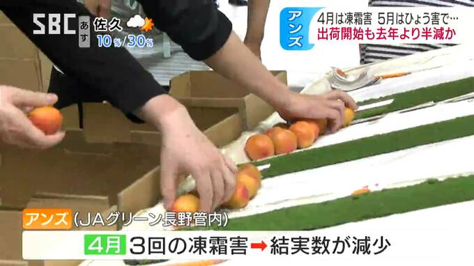 JAグリーン長野によりますと、今年は4月に3回の凍霜害を受け、結んだ実の数が減少。