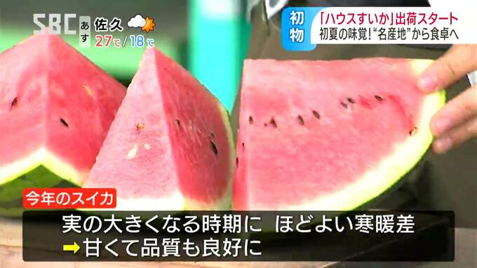 ハウス栽培のスイカは主に県内向けで7月上旬までに8,000玉ほどが出荷され、その後は、露地物の出荷も始まります。