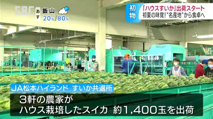 松本市波田(はた)の共選所には、12日、地元の3軒の農家がハウスで育てたスイカおよそ1,400玉が持ち込まれました。