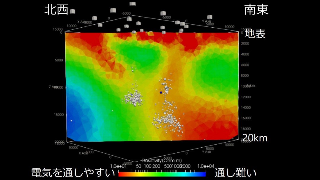 こうした電気を通しやすい領域は、2007年の能登半島地震でも震源近くにあることが分かっていて、流体が地震を引き起こした可能性が指摘されています。