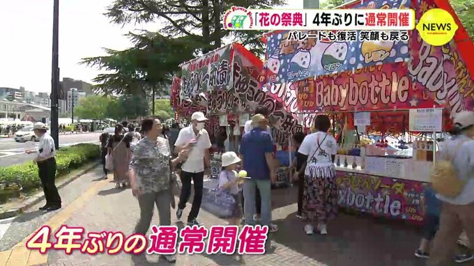 晴天に恵まれた10日のフラワーフェスティバル初日。パレードや出店も復活の、4年ぶり通常開催となりました。