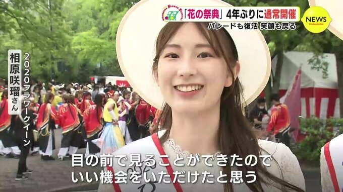 そして、ことしは、去年までフラワークイーンを続投してオンライン配信などに出演していた、2020年のフラワークイーンも花を添えました。