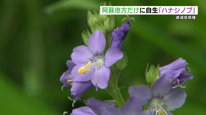 全国でも阿蘇地方だけに自生する「ハナシノブ」の花が、薄紫色の可憐な花を咲かせています。ハナシノブは山地の草原に生える多年草で、現在自生が確認されているのは、全国でも阿蘇地方のごく一部だけです。また、…