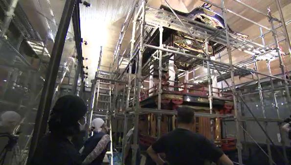 葛飾北斎が製作に携わった祭屋台(まつりやたい)が、初めて小布施町の北斎館以外で展示されることになり、13日から屋台の解体が始まりました。小布施町の「北斎館」に展示されている「上町祭屋台(かんまちまつり…