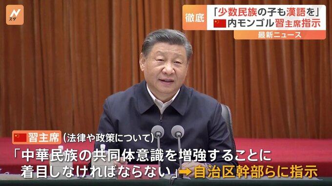 中国の習近平国家主席は内モンゴル自治区を視察し、地元の少数民族が通う学校で中国の標準語である「漢語」の教育の徹底を指示しました。中国国営の中央テレビによりますと、習主席は7日と8日に内モンゴル自治区を…