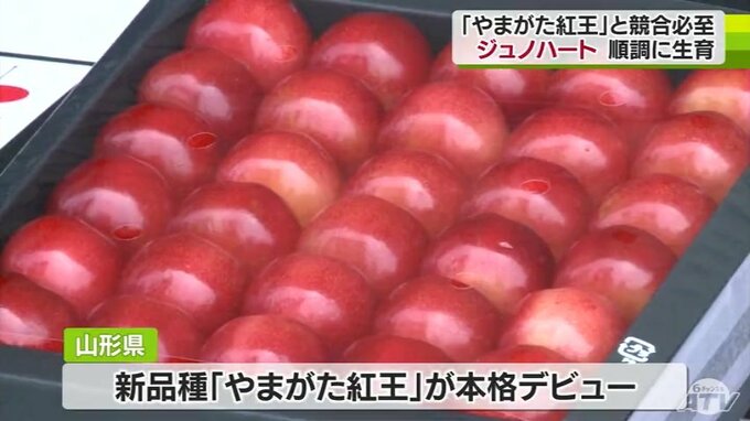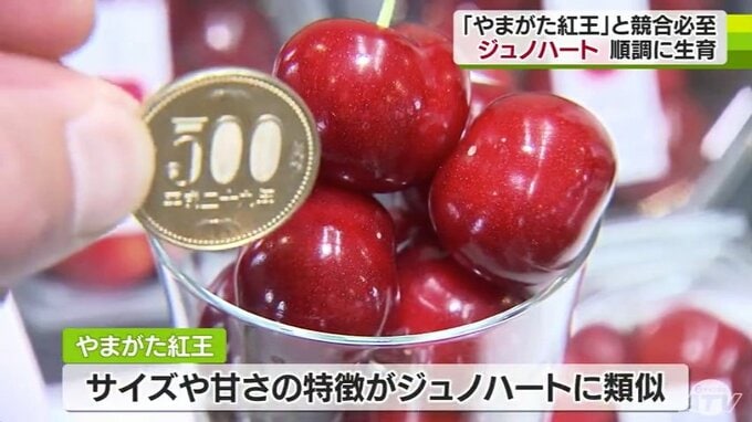 「ジュノハート」を青森県が売り出す中、脅威となっているのが山形県の新品種です。国内シェアナンバーワンのサクランボ王国では今年、新品種の「やまがた紅王(べにおう)」が本格デビュー。サイズも500円ほどの大玉で糖度20%を超える甘さもジュノハートにそっくりです。