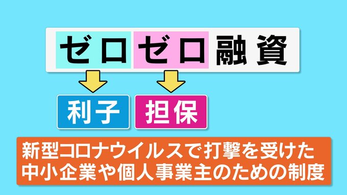 1つ目のゼロは「利子が実質ゼロ」、もう一つのゼロは「担保がゼロ」という融資のことで、新型コロナウイルスで打撃を受けた中小企業や個人事業主のために2020年に作られた制度です。