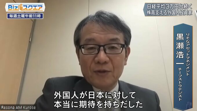 りそなアセットマネジメントの黒瀬浩一氏は、株高の要因に外国人投資家の存在があるという。