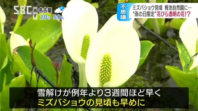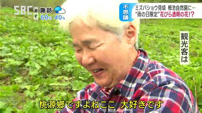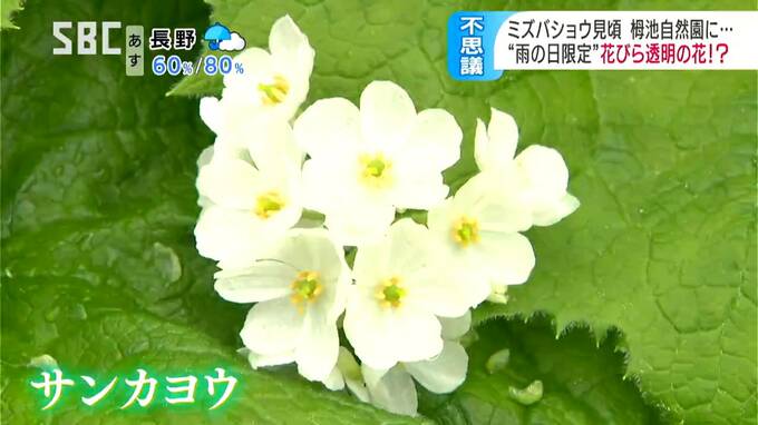 ミズバショウなど初夏の花々が見頃を迎えた小谷村の栂池(つがいけ)自然園で、雨の日限定で見ることができるというちょっと変わった花を見つけました。