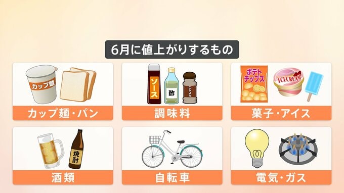 6月からは日清食品のカップヌードルのほか、調味料やアイスクリーム、電気代、ガス代など、様々なものが値上がりします。