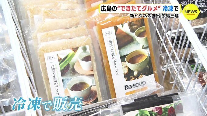 広島県内の食材で作った「できたてグルメ」が冷凍食品になって、広島市のデパートに登場しました。