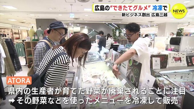 広島市の食品メーカー「ATORA」は、県内の生産者が育てた野菜が大きさや形などの問題で捨てられている状況に注目し、その野菜などを使ったメニューを冷凍して販売しています。