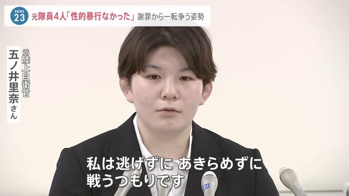 裁判の中で、元隊員の5人のうち4人は「性的暴行はなかった」と主張していて、謝罪から一転して争う姿勢を示しているわけです。