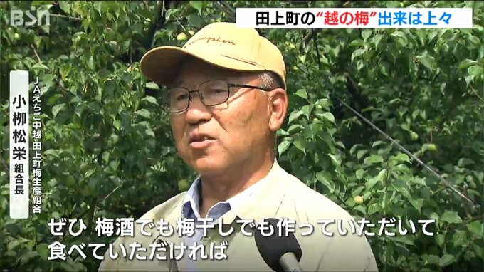 【JAえちご中越 田上町梅生産組合 小柳松栄 組合長】「梅は昔から健康食品と呼ばれてますので、ぜひ梅酒でも梅干しでも作っていただいて食べていただければ」