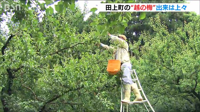 収穫された梅は早ければ15日、県内のスーパーや直売所、道の駅に並ぶということです。収穫は今月下旬まで続きます。