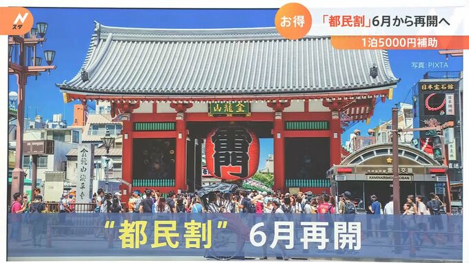 都民がお得に旅行する事ができる“都民割”「もっと東京」が来月中にスタートします。1人1泊につき5000円割引、日帰り旅行は1人1回2500円を割引。新型コロナの感染状況などで、これまで都民だけ恩恵を受けられない…