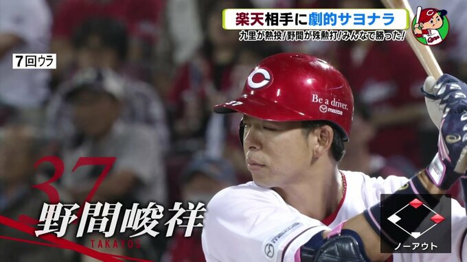 打席には再び野間。野間の一打で劇的なサヨナラ勝ちを収めたカープは、交流戦の順位も4位に浮上です。