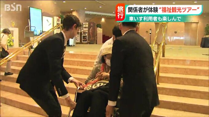 このツアーは車いす利用者でもサポートがあれば旅行を楽しめるということを知ってもらおうと、介護施設の職員やケアマネージャーらを対象に行われたものです。