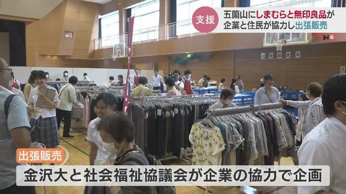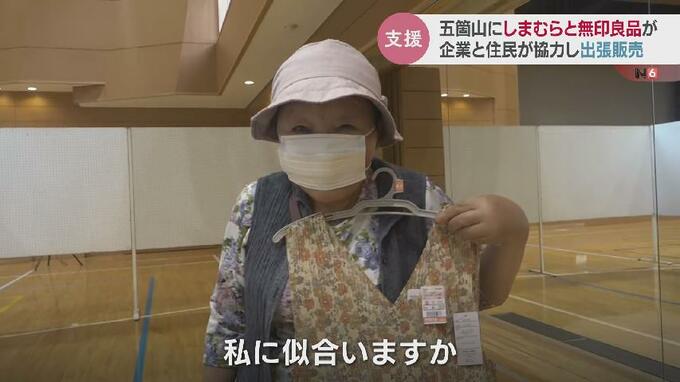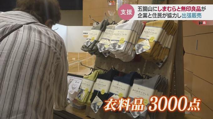 「しまむら」からは紳士服やファッション小物など、住民の年代や男女比を参考におよそ3000点が並びました。