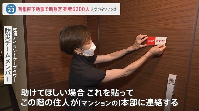 「安否確認のためのマグネットを管理組合が作って、各住戸に配布しています。助けてほしい場合、【HELP たすけて】と書かれたマグネットをドアに貼っておきます。この階の住人がマンションの本部に連絡する」