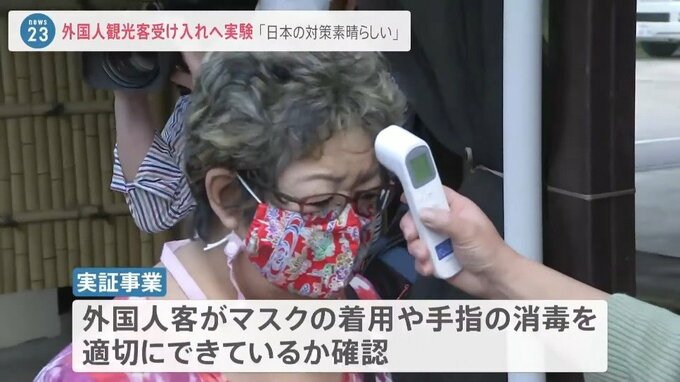 今回の実証事業では、外国人客がマスクの着用や手指の消毒を適切にできているかなども確認する予定です。