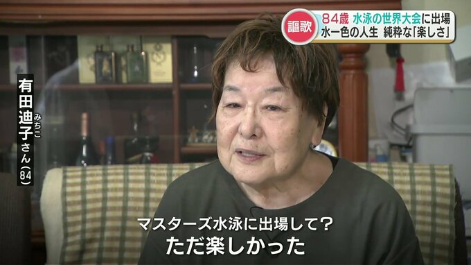 今年8月に、福岡や熊本で水泳の世界大会、「マスターズ水泳」が開かれます。この大会に出場する84歳の女性、その水泳人生に迫りました。