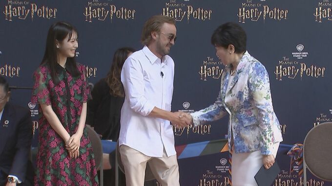 「ハリー・ポッター」シリーズの撮影の裏側を体験できる施設「ワーナー ブラザース スタジオツアー東京 - メイキング・オブ・ハリー・ポッター」がオープン。オープニングセレモニーが行われ、ハリー・ポッターの日本語吹替版声優を務める小野賢章さん、俳優の浜辺美波さん、小池百合子東京都知事、そして映画でドラコ・マルフォイを演じたトム・フェルトンさんらが登場しました。