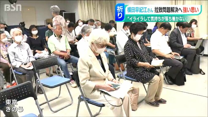 北朝鮮による拉致被害者 横田めぐみさんの救出を願う会が15日、開かれ自宅で倒れて死を意識したという母 早紀江さんが改めて問題解決への強い思いを語りました。