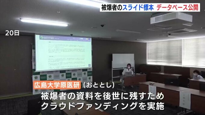 公開されたのは、1945年の12月末までに亡くなった被爆者100人の資料です。臓器や組織のスライド標本をデータベース化しました。被爆した場所や被爆後の症状の経過など、標本からわかることを説明しています。