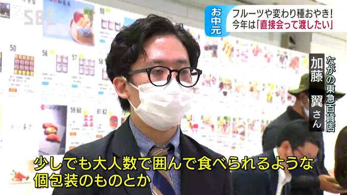 今年はコロナも落ち着き、お中元を直接会って渡したり、家族全員で集まったりできるようになったことから、店では大勢で一緒に食べられるものを勧めています。