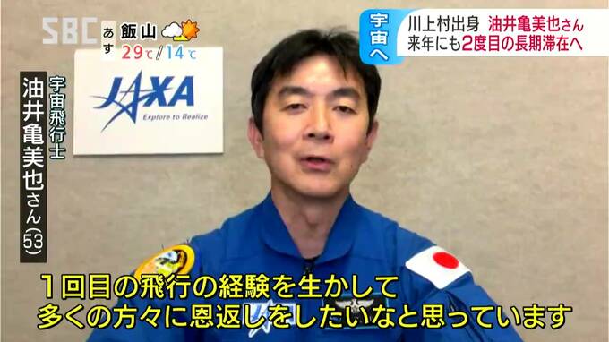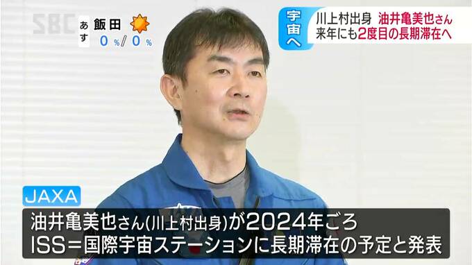 川上村出身の宇宙飛行士・油井亀美也(ゆいきみや)さんが、2024年にも、ISS=国際宇宙ステーションに長期滞在することがわかりました。