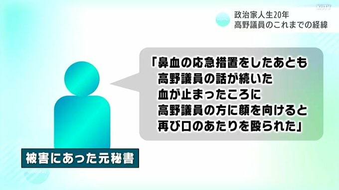 被害にあった元秘書がテレビ高知の取材に応じ、「鼻血が出たあとももう一度殴られた」と証言。説明の食い違いが明らかとなります。