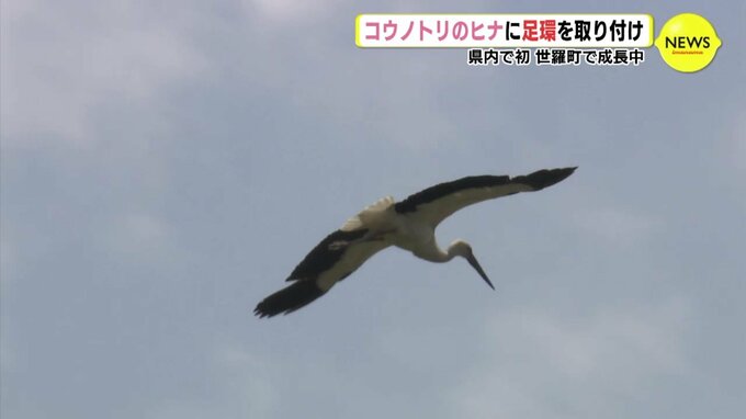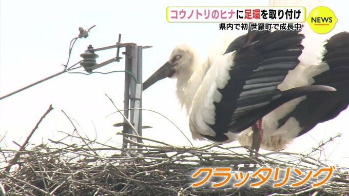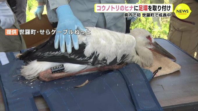 広島県内で初めて生まれた国の特別天然記念物コウノトリのヒナに、個体を識別するための足環がつけられました。