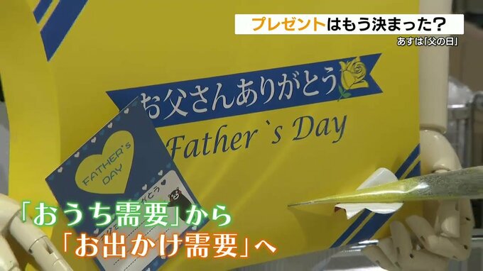 18日(日)の「父の日」を前に、熊本市の百貨店では贈り物選びが佳境を迎えています。鶴屋百貨店によりますと、去年まではコロナ禍でパジャマなどの「おうち需要」が中心でしたが、今年は「お出かけ関連」の商品が多…