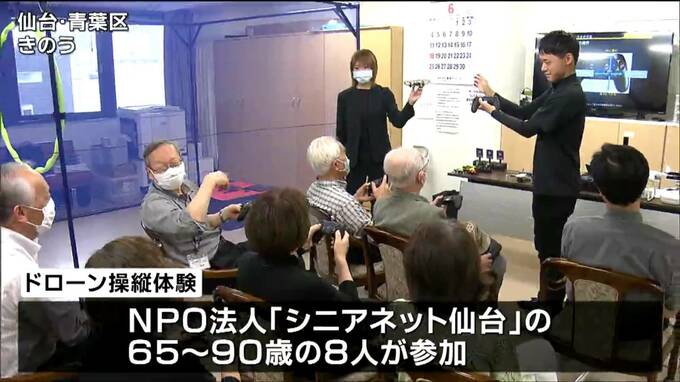 仙台市内の高齢者のグループが16日、ドローンの操縦を体験し、認知機能を鍛える「脳トレ」に励みました。