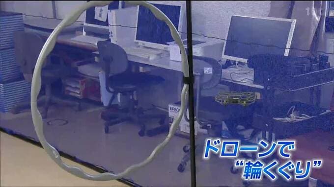 参加者は、屋内用ドローンを使って輪をくぐらせるゲームに挑戦しました。