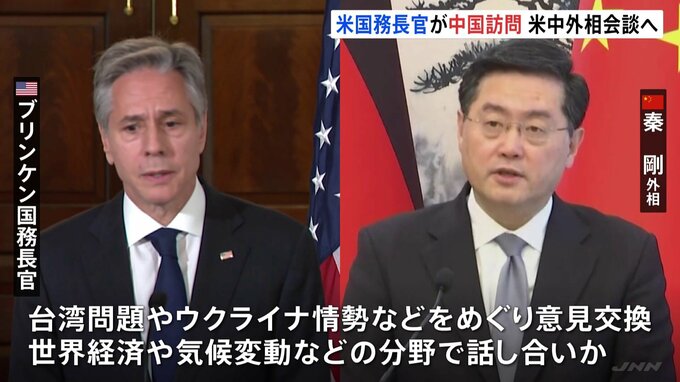 アメリカのバイデン政権の閣僚として初めてブリンケン国務長官が中国を訪問しました。きょう午後、秦剛外相と会談する予定で、対立緩和の糸口をつかめるかが焦点です。記者「ブリンケン長官を乗せた飛行機が北京の…